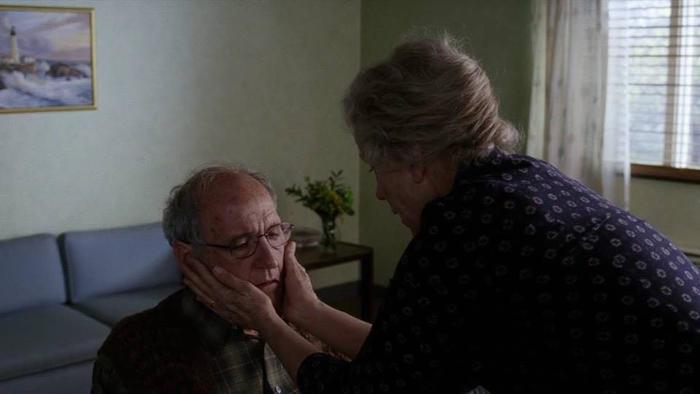 可怜的老Henry中风不能动弹,Olive趴在他的胸口,表达着对他的爱和依赖,日夜像照顾孩子一样的守护着。