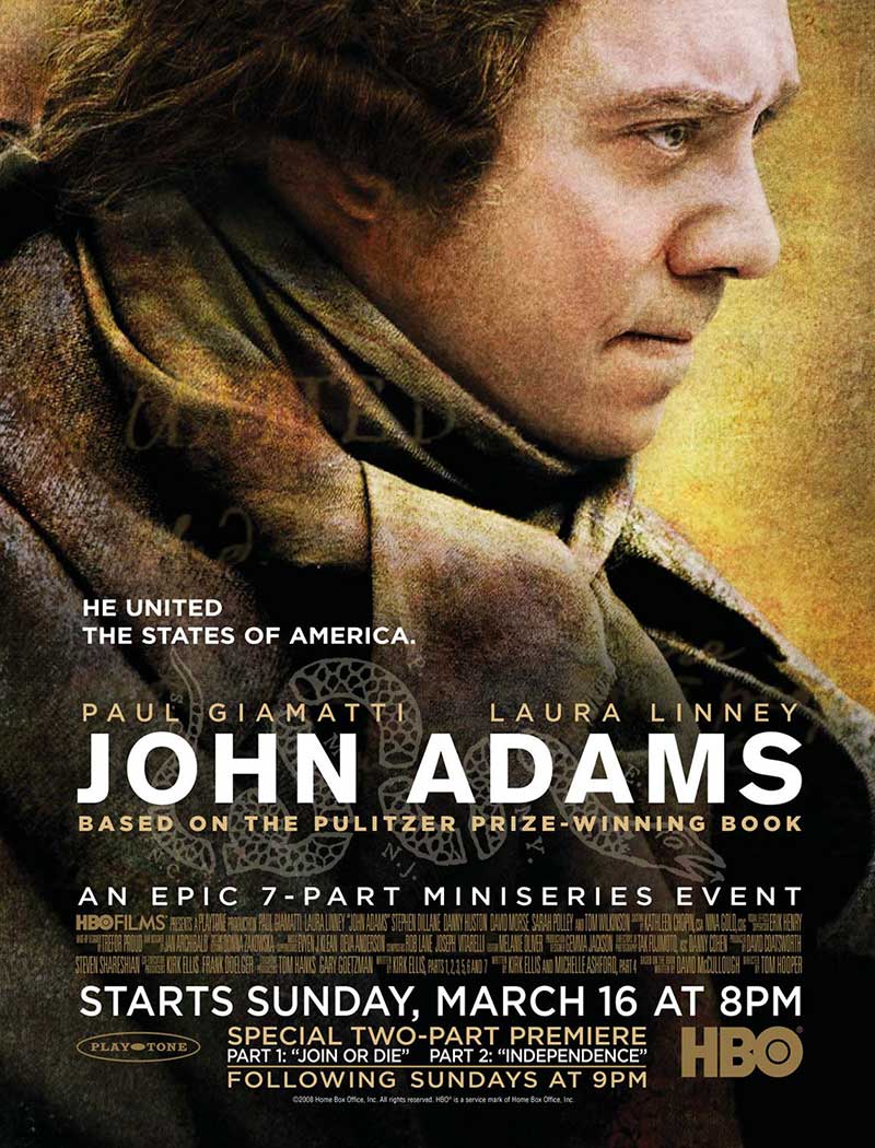 HBO的历史迷你剧John Adams,根据美国第二任总统John Adams的生平以及美国初期历史改编,Paul Giamatti主演,演员阵容强大,由于约翰·亚当斯在任恰值英美战争时期,所以同时还有大量英国演员加盟,大量服装道具都由BBC支持,所以场面上将是一部向罗马看齐的巨作。